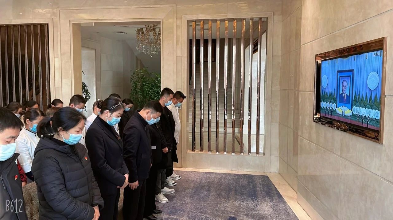 12月6日上午10时,党中央、全国人大常委会、国务院、全国政协、中央军委在北京人民大会堂隆重举行江泽民同志追悼大会。沙龙宴党支部组织公司全体党员干部及在岗职工集中收看了江泽民同志追悼大会。全体人员伴随着沉重的哀乐肃立默哀3分钟,行三鞠躬礼,沉痛哀悼、深切缅怀敬爱的江泽民同志。