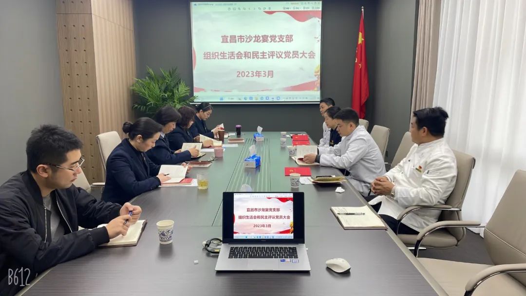3月7日,宜昌市沙龙宴党支部在公司办公室召开2022年度组织生活会、民主评议党员。会议由支部书记叶菲主持,公司董事长张明春及全体在宜党员、积极分子参会。