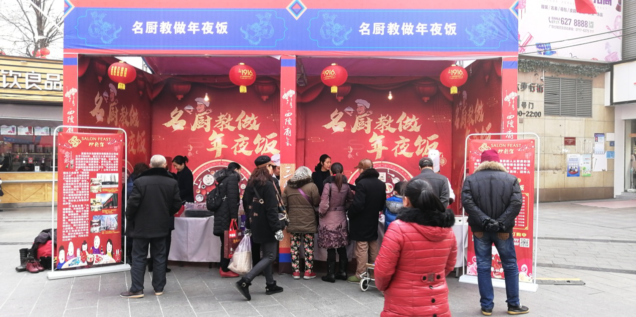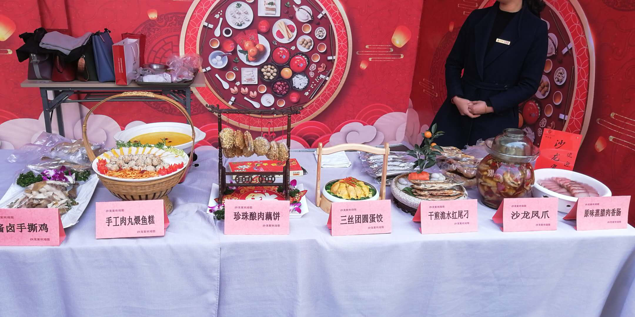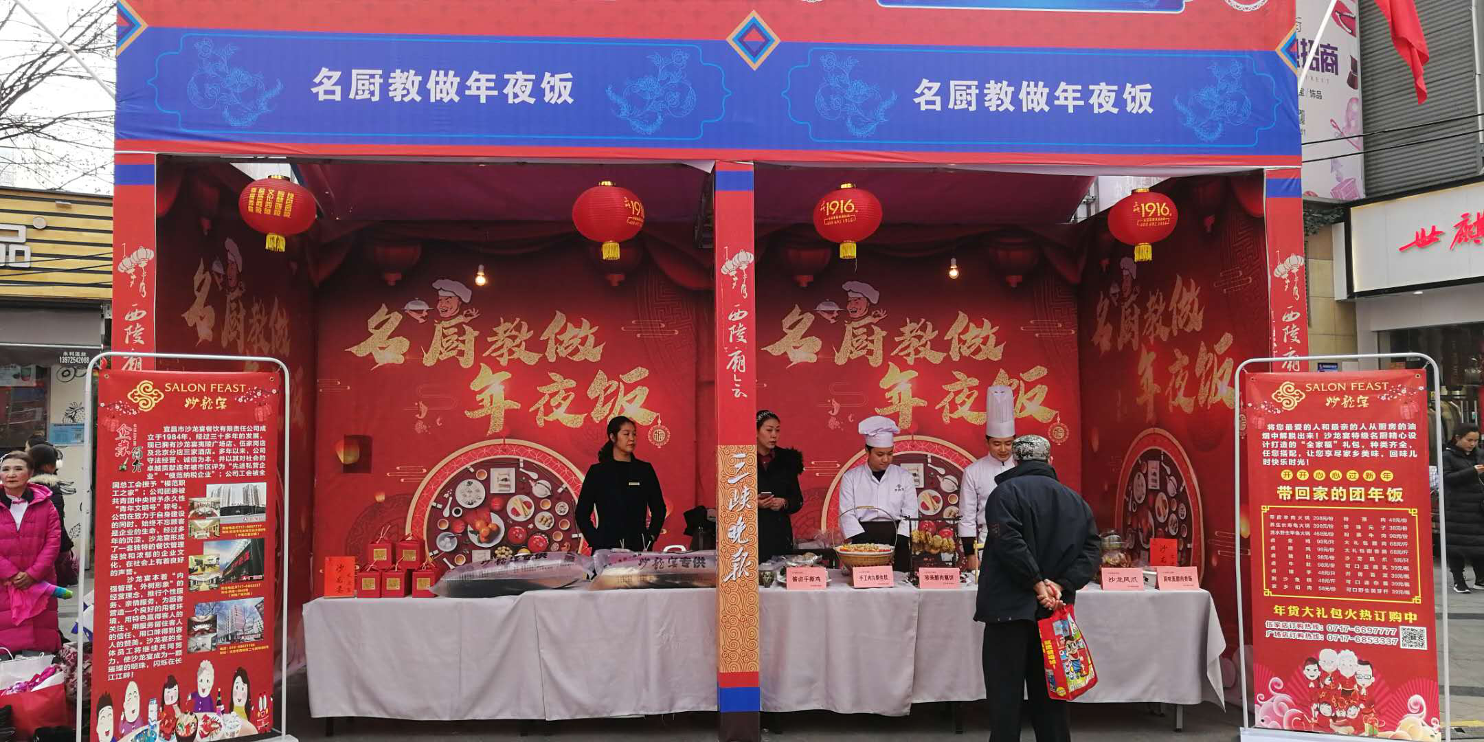 2019第十三届宜昌西陵区庙会在解放路步行街盛大启幕,为宜昌市民端上了一道集赏、玩、乐、购于一体的群众文化盛宴。1月21日下午,沙龙宴酒店管理集团营运副总聂海琴、行政总厨杨春亚、沙龙宴广场店厨师长陈俊带队参加了此次“名厨教做团年宴”的美食秀活动。