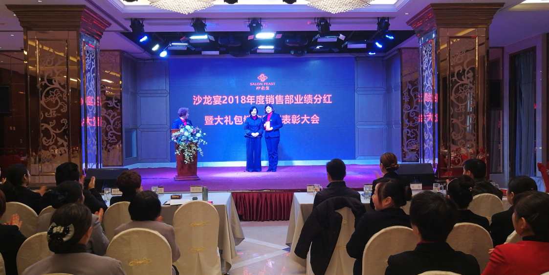 2019年2月21日上午,在沙龙宴伍家店隆重召开了2018年度销售部业绩分红暨大礼包销售冠军表彰大会。公司董事长张明春、总经理张军国、党支部副书记叶菲、运营总监聂海琴、行政总厨杨春亚、财务科长张云霞及各店经理、厨师长参加了会议。