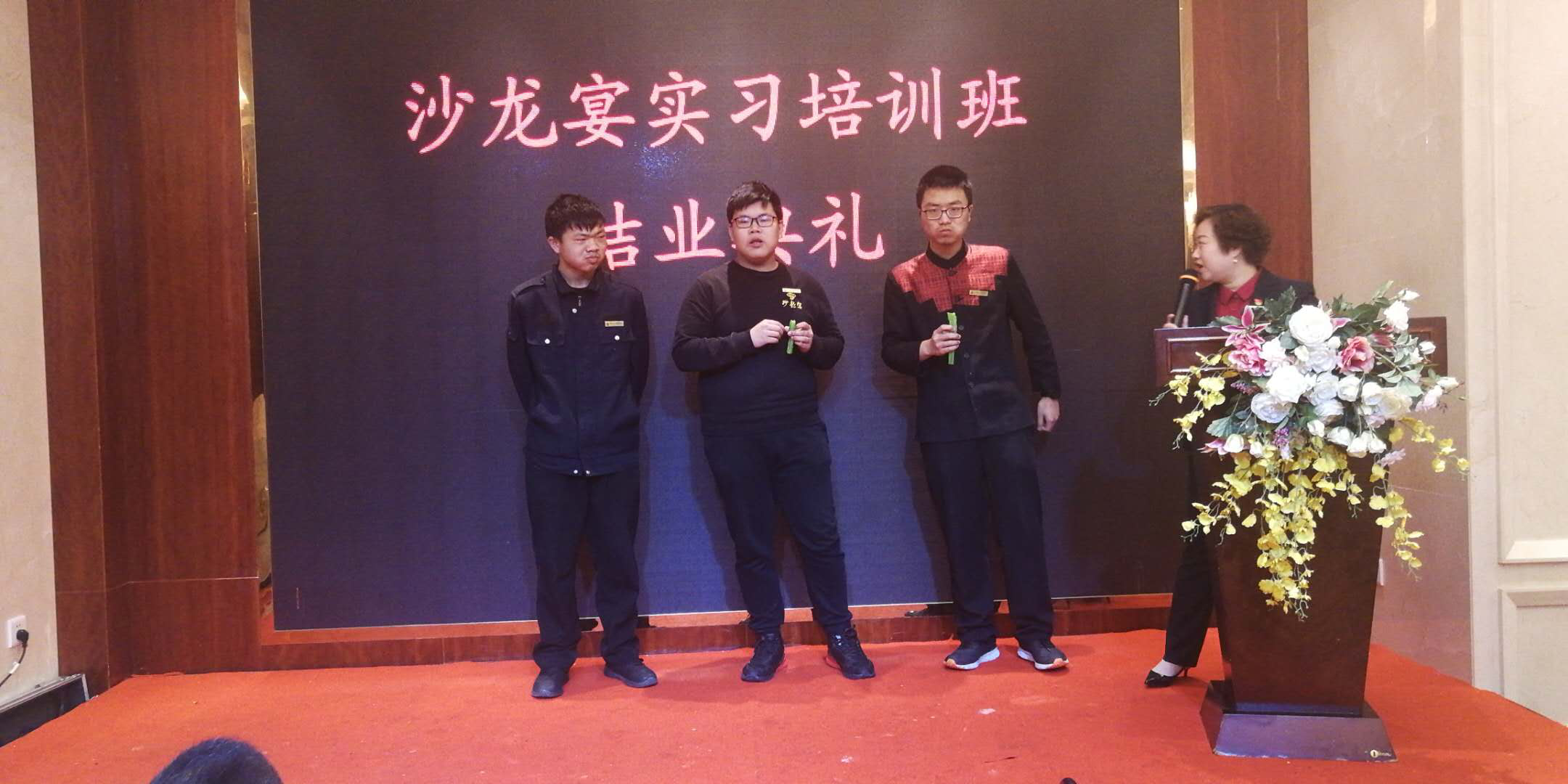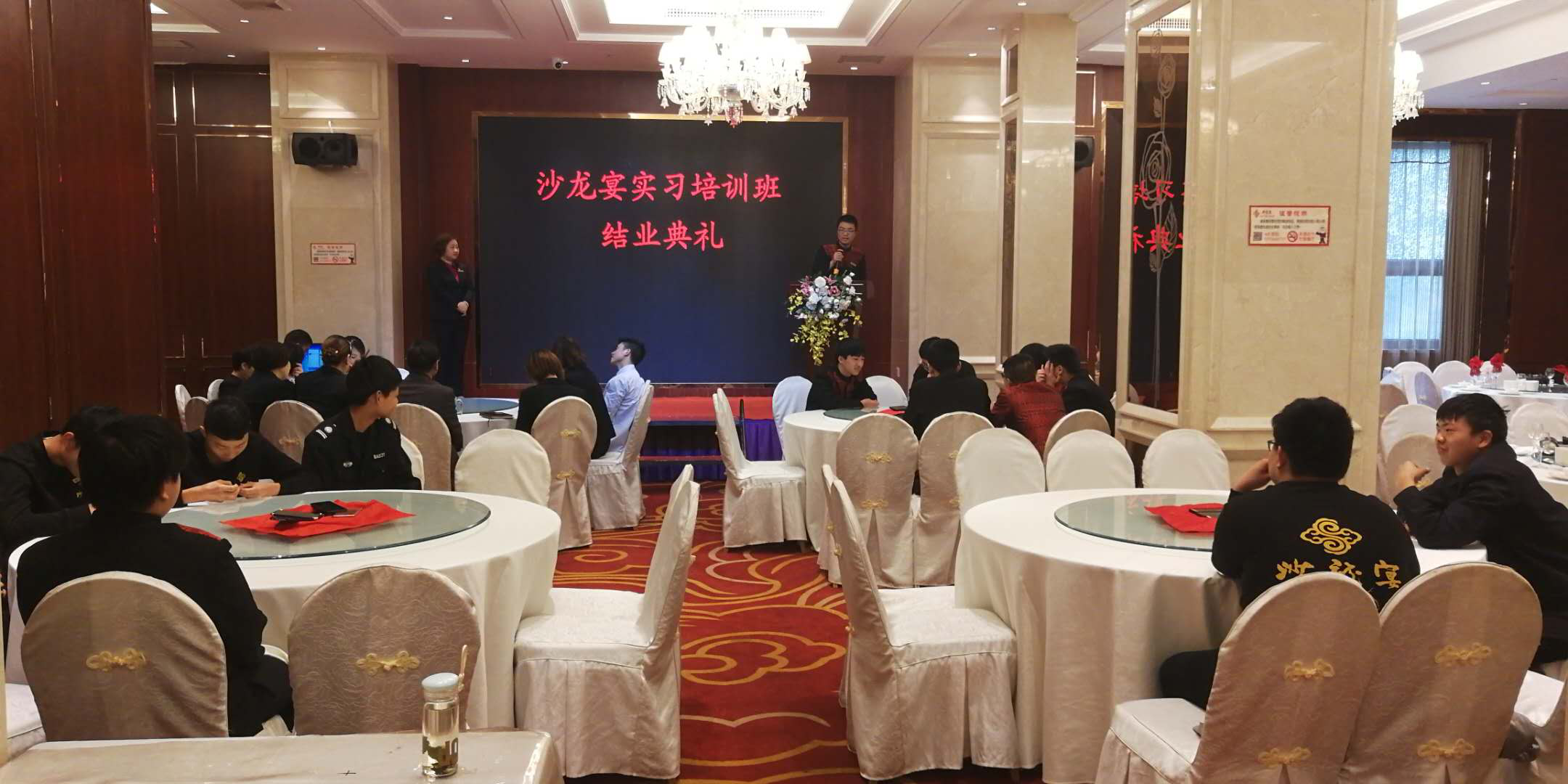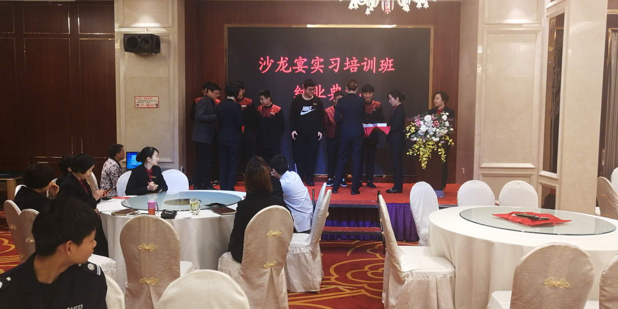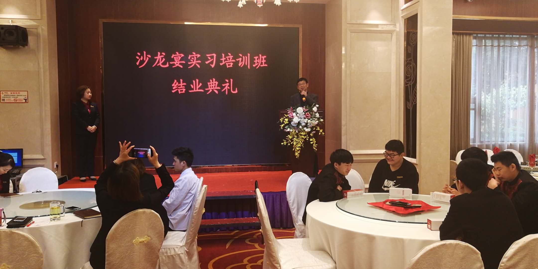 2019年4月4日上午,沙龙宴第二批实习学生培训结业典礼顺利举行。公司党支部副书记叶菲、营运总监聂海琴、伍家店各管理人员及湖北三峡技师学院招生办主任、高级讲师张家文参加了结业典礼并讲话。