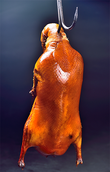 外皮焦黄香脆,内质肉嫩滑润,将鸭肉切成薄薄的片,每一片有肉有油,荷叶饼抹上一层甜面酱,加上大葱段,把鸭肉片卷进去,吃起来肥而不腻,鲜美可口。