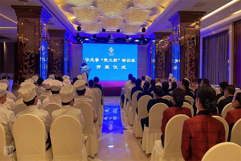 11月14日上午,沙龙宴“楚大厨”培训班开班仪式暨首期实操课程开课在沙龙宴金色大厅隆重举行,沙龙宴的30名厨师学员参训,公司董事长张明春,行政总厨杨春亚、运营副总聂海琴到会,会议由公司党支部书记叶菲主持。